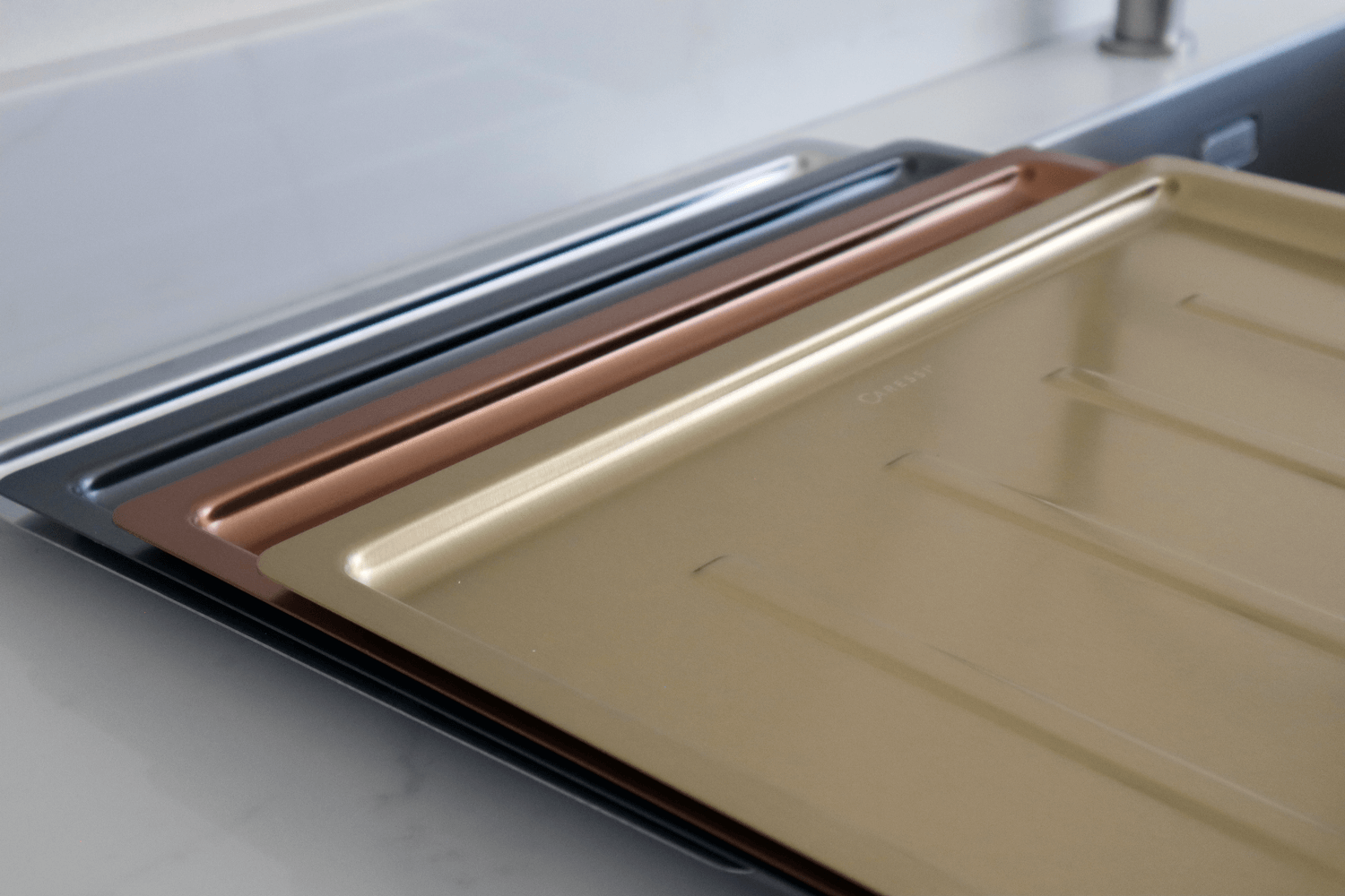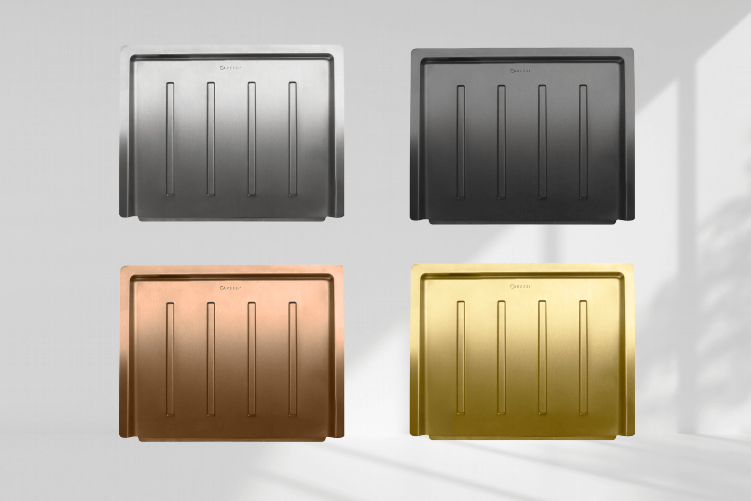 - Gun Metal, Copper en Gold, die prachtig matchen met ons uitgebreide assortiment kranen, spoelbakken en andere accessoires in deze luxe designkleuren.